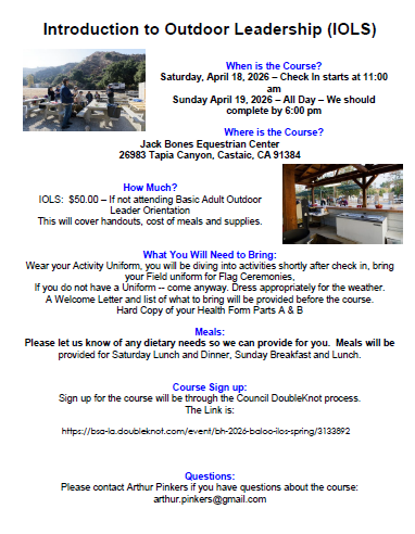 Bill Hart IOLS & BALOO Training Spring 2026 April 18th & 19th Jack Bones Equestrian Center $50 per person